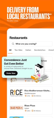 Got a craving for a local favorite? Introducing restaurant delivery! Enjoy your favorite restaurant meal delivered straight to your door.
