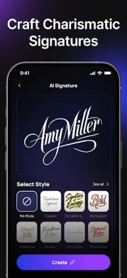Need a unique signature for branding, business or personal use? Hexa ai signature maker, ai signature creator and easy signature app delivers a variety of elegant, modern and stylized esignature maker based on your name and preferred vibe with ai signature creator, ai signature generator and easy signature app.