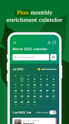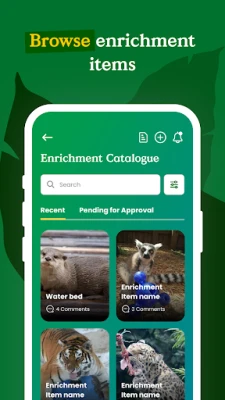 A mobile app for Animal Care Staff that enables planning, communication, and productivity on-the-go. Empowers Animal Care Staff to plan and coordinate animal enrichment programs on the go, by enabling them to submit enrichment items for approval, share enrichment ideas in the communal catalogue, schedule enrichment activities in calendar view, and loan or transfer tools and materials.