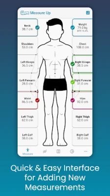Not to worry! Measure Up is your no-fuss, easy-to-use Weight & Body Measurement Tracker tool for tracking weight loss and muscle gains!