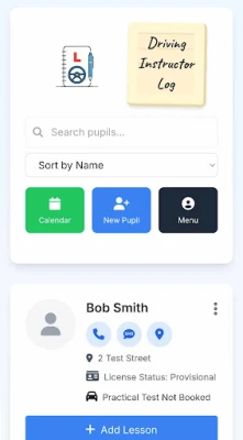 Driving instructor management app that helps instructors track their pupils' progress, manage lessons, and monitor test dates. Here's a brief overview of what this app does: