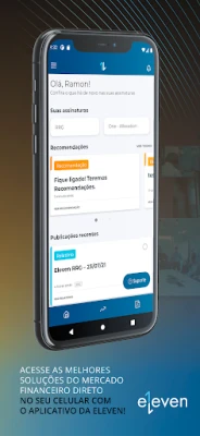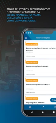 Este aplicativo oficial da Eleven Financial vem com a finalidade de informar todos os produtos relacionados, além de notificar os clientes sobre novas recomendações de investimentos em tempo real da Eleven Financial. Além de receber o "push" de notificação de novas operações, também poderá consultar o histórico das recomendações.