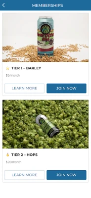 - Memberships - Redeem - Notifications - Beer Finder - Our Beers - Happenings - Private Event - Merchandise