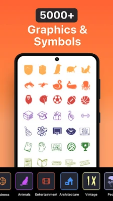 Logo Maker app has over 6,000 design templates, including fonts, symbols, shapes, icons, and backgrounds. Each resource has been carefully chosen and crafted to give you the ability to edit and create superb professional logos that stand out from the crowd.