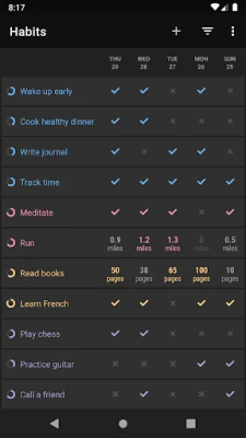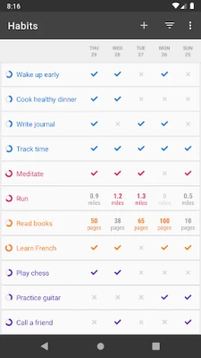 Supports not only daily habits, but also habits with more complex schedules, such as 3 times every week; one time every other week; or every other day.