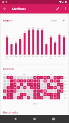 Clearly see how your habits improved over time with detailed charts and statistics. Scroll back to see the complete history of your habits.