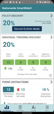 As part of our ongoing efforts to reduce distracted driving, the SmartRide Mobile App also keeps track of how often you interact with your phone while your vehicle is in motion. Phone distractions don't affect your discount, but knowing your data can help you stay safe.