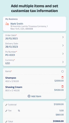 Purchase Order Maker – Create PO, Invoices & Estimates