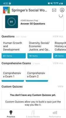 • Custom quizzes so you can study by topic or randomized