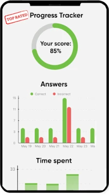 - Train in real exam conditions with randomized questions and a countdown timer.