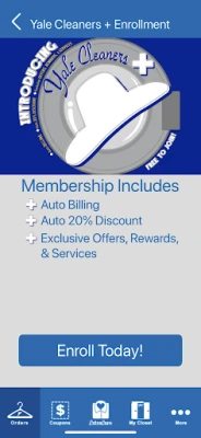 The wait is finally over, introducing Yale Cleaners' all new App featuring Extra Care! Our app has been totally redesigned with a completely new look and feel. It's loaded with lots of new fresh features and improvements. Plus, download or update Yale's app to receive $10 off your next dry cleaning purchase.